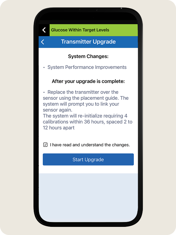 • Choose a Convenient Time: Upgrading can put your system into the Initialization Phase, which requires four fingerstick calibrations.