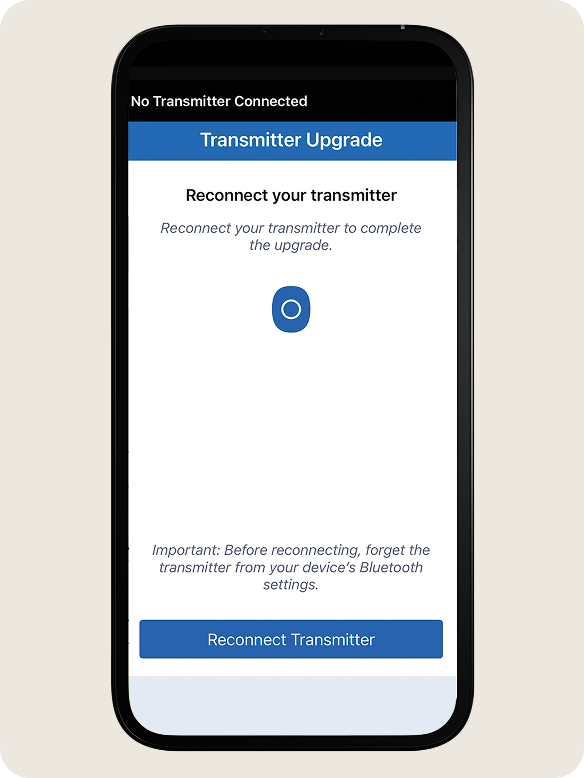 During some upgrades, you may be prompted to reconnect your transmitter.